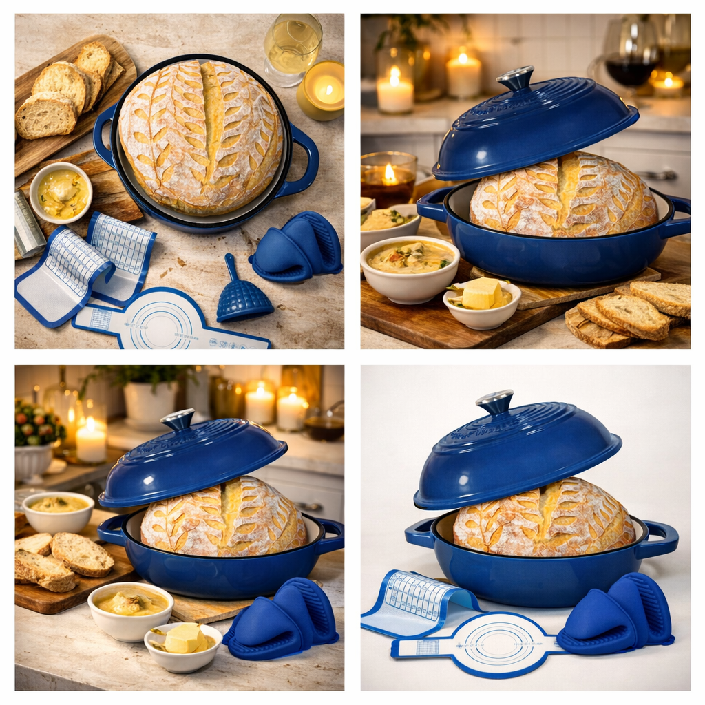 The Bread Night Essentials set pairs our enameled bread oven with a beautifully woven bread basket, creating a simple yet unforgettable hosting experience. From oven to table, this collection turns homemade bread into the heart of the evening.